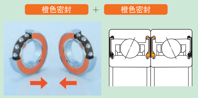 ULTAGE系列帶密封角接觸球軸承,通過封裝潤滑脂,后期不需要潤滑脂加注,且為了識別方便,在正面和背面采用不同顏色的密封,可通過顏色確認正面(黑色)和背面(橙色),方便配對使用。