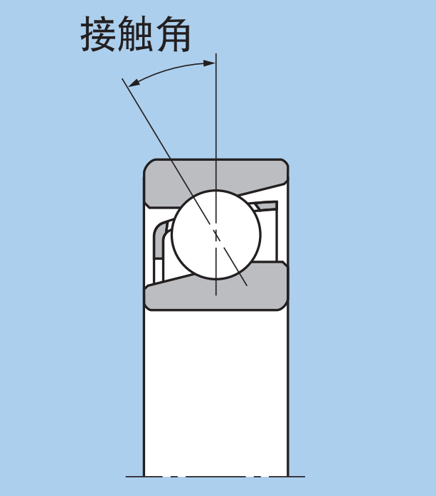 角接觸球軸承為不可分離型軸承,滾珠與內外圈的接觸面呈現一個夾角的形式,如上圖所示,因此便被稱為角接觸球軸承,一般有三種接觸角,第一種是15度(代號C),第二種是30度(代號A或無代號),第三種是40度(代號B)。