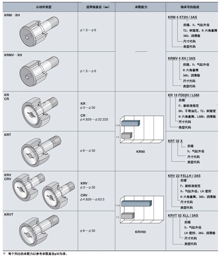 標有后綴(包括“F”)的凸輪從動件類型是符合新標準規范的產品。在裝配方法和潤滑方法方面,它們與傳統產品相同,但通過凸形滾柱和特殊熱處理改善了功能。請注意,后綴包括“F”但沒有油孔的凸輪從動件類型預先填充了尿素基高功能性潤滑脂,并用后綴包括“DO”標識。