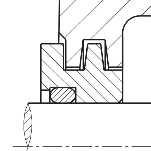 5、圓繩迷宮密封。多個軸承座外殼可以配備這種非接觸式密封,插入迷宮環和軸之間的圓繩用于提升迷宮環密封,不需要對該密封件的圓周速度進行任何限制,該類密封件的最大軸偏差為 ±0.5°,最高使用溫度為 200°C。