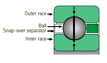 C型徑向接觸軸承是一種傳統設計的單列徑向滾珠軸承,通過內圈的偏心位移進行組裝,可以插入大約一半的完整滾珠,C型軸承主要用于徑向載荷應用,可以配置為接受任意方向的軸向(推力)載荷,但是,如果推力較大,應針對具體應用考慮一組角接觸軸承。
