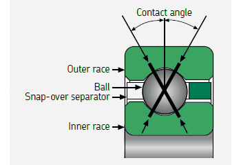 A型軸承有一個圓形口袋分離器和30°的接觸角,以及大約67%的全套滾珠,A型軸承提供了比C型或X型軸承更大的推力載荷,其沉頭外座圈設計,使A型軸承可承受單向推力載荷,因此,該軸承應與另一軸承相對安裝,以支持反向推力負載。