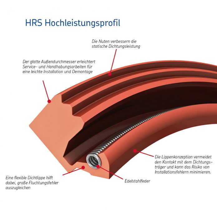 HRS密封件也可作為分體式,可采用帶開口連接點(diǎn)的拉伸彈簧的切割墊圈的形式,拉伸彈簧和墊圈可圍繞固定部件引導(dǎo),拉伸彈簧端部通過彈簧鎖簡單地?cái)Q入到位,而墊圈不需要任何進(jìn)一步處理,安裝時(shí)端部之間的切割間隙自動關(guān)閉,這樣就不需要復(fù)雜的粘接或焊接,從而使安裝更加容易。