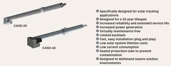 CASD線性執(zhí)行器可提高效率,降低電流消耗、提高定位精度和限制反沖,作為一個完整的單元,致動器不僅易于安裝在任何太陽能應(yīng)用中,而且還大大縮短了設(shè)計和開發(fā)時間,同時節(jié)省了運行成本。