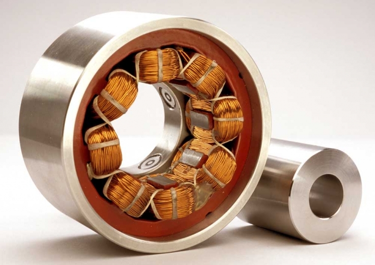 磁性軸承使用磁懸浮來支撐旋轉軸,大多數磁性軸承設計使用圍繞軸承殼和包含鐵磁性材料的軸布置的磁體,磁鐵吸引軸,當作用在軸上的力平衡時,它被保持遠離外殼,允許低摩擦旋轉。這種設計使用由電子控制系統供電的電磁鐵,該系統可以調整電磁鐵產生的力,外殼中的傳感器持續監測軸的位置,控制系統改變輸送到磁體的功率,以將軸保持在最佳位置。