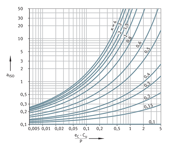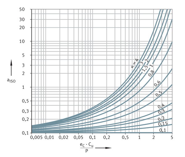 出于實際目的,壽命調整系數應限制在aISO≤50。如果eC·Cu/P>5,該限值也適用。對于粘度比κ>4,應使用值κ=4;如果κ<0,1,則計算無效。