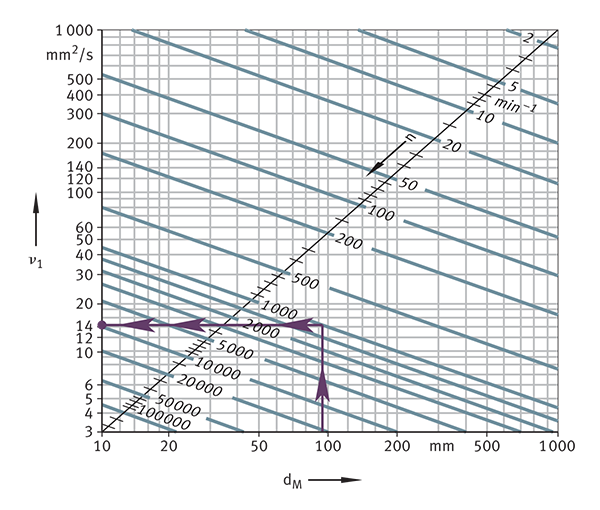 根據平均軸承直徑dM=(D+d)/2和運行速度n確定參考粘度ν1