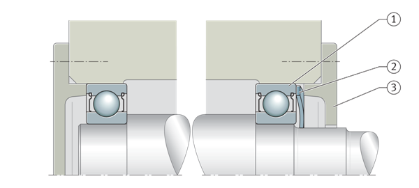 滾動軸承必須根據其功能在徑向、軸向和切向方向上位于軸上和殼體中。在徑向和切向上,這是通過緊密配合實現的。然而,這只有在軸向的特定條件下才可能實現,因此滾動軸承通常通過形狀配合進行軸向定位。