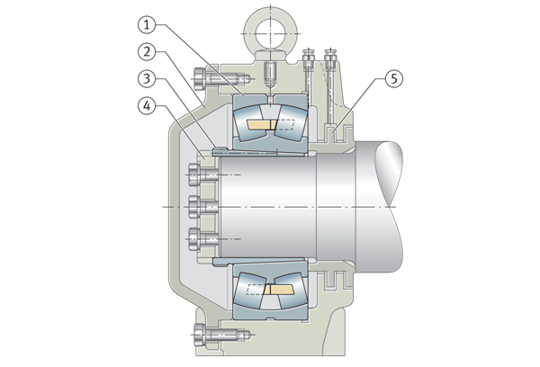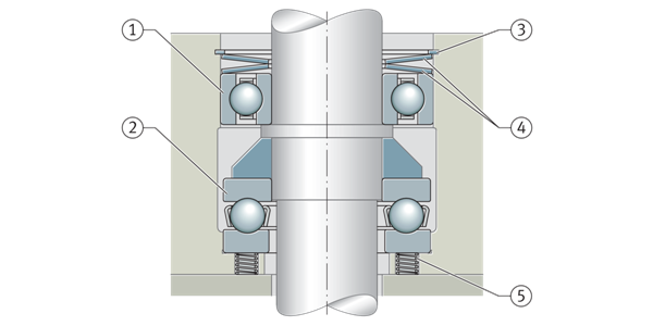 調整后的軸承布置也可以通過使用彈簧預緊來實現,這種彈性調節方法可補償熱膨脹,也可以用于軸承裝置在靜止時有振動風險的情況。