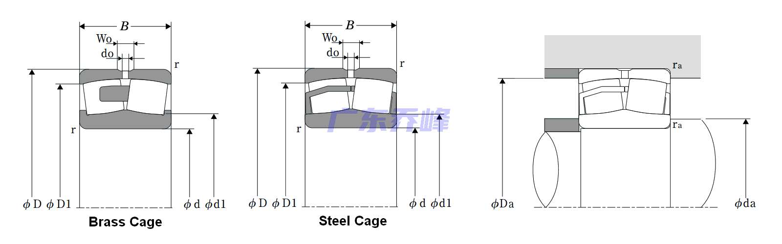 | 調(diào)心滾子軸承 - 圓柱孔&注油槽,223系列 - 尺寸 | |