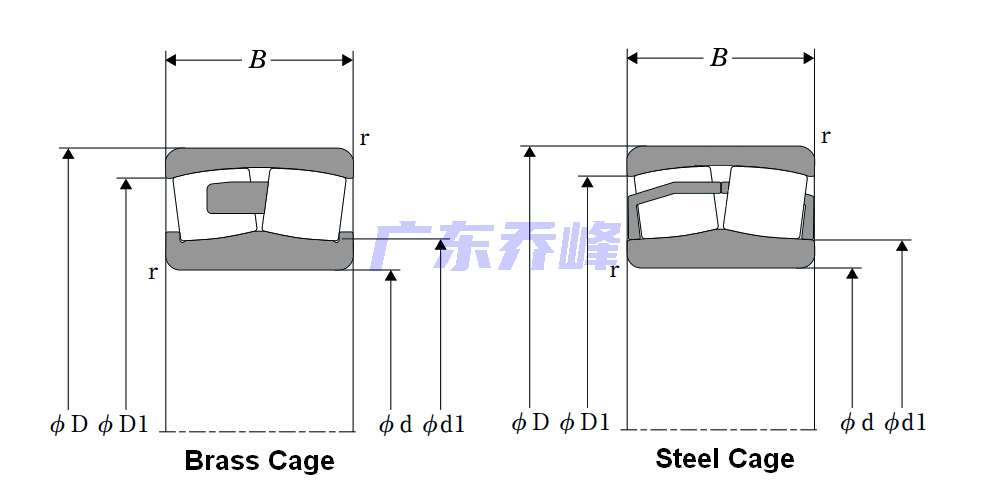 一體式機(jī)加工黃銅保持架,抗沖擊性好,剛度大(B型:每排一個(gè)機(jī)加工黃銅保持架)