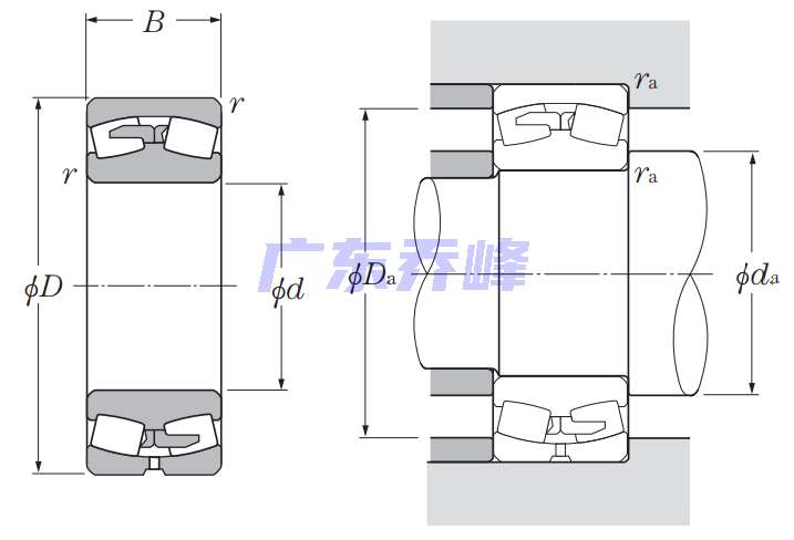 | 調(diào)心滾子軸承 - 圓柱孔,240系列 - 尺寸 | |
