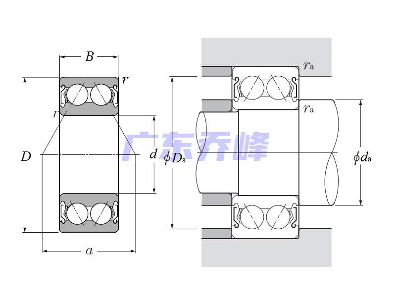 雙列角接觸球軸承 - 雙面防塵蓋 - 尺寸
