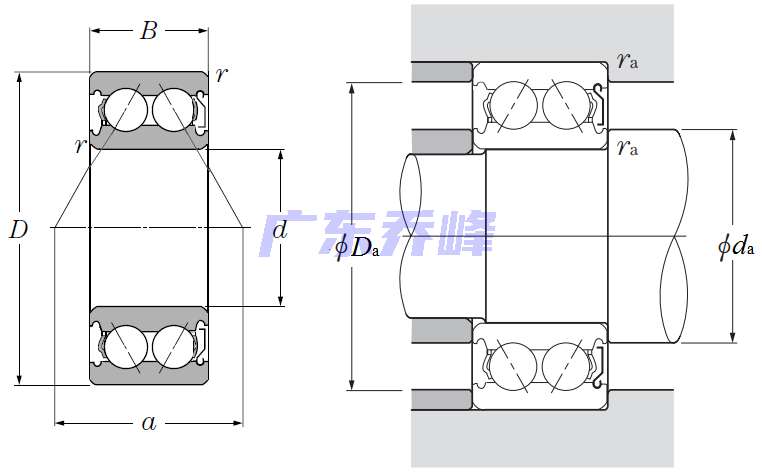 雙列角接觸球軸承 - 單面防塵蓋 - 尺寸