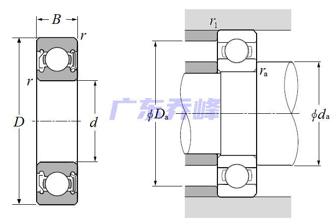 | 單列深溝球軸承 - 單面防塵蓋&單面密封(接觸式橡膠密封) - 尺寸 | |
