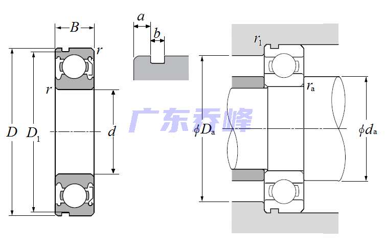 | 單列深溝球軸承 - 單面防塵蓋帶止動環(huán)槽 - 尺寸 | |