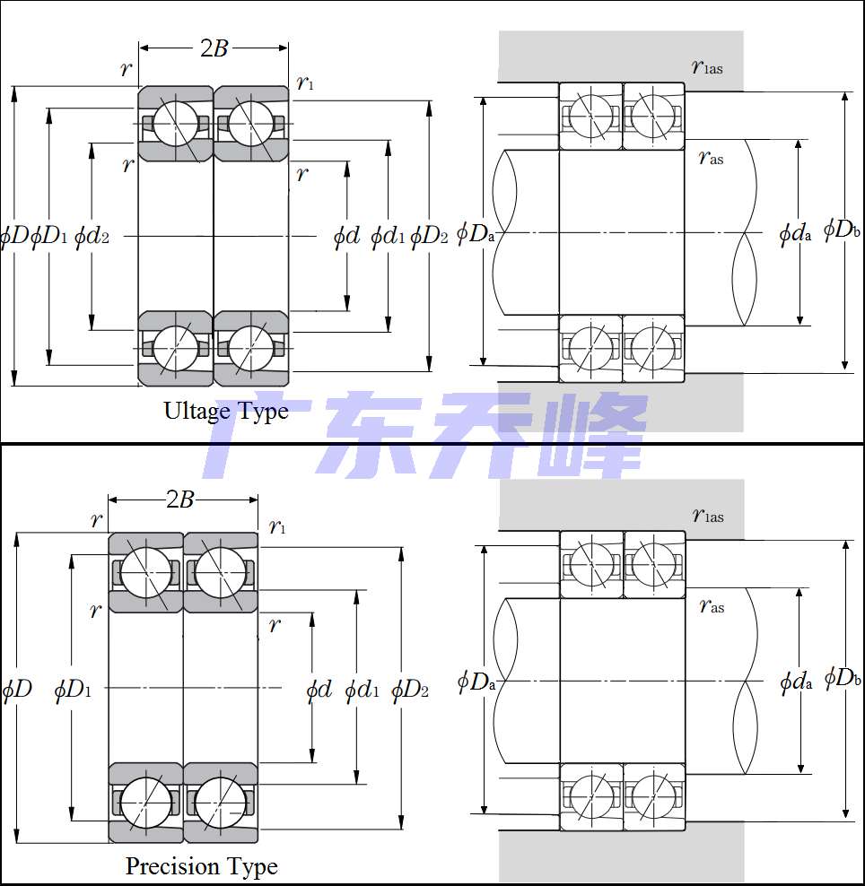 | 雙聯(lián)角接觸球軸承 - 串聯(lián)配對(duì) - 尺寸 | |