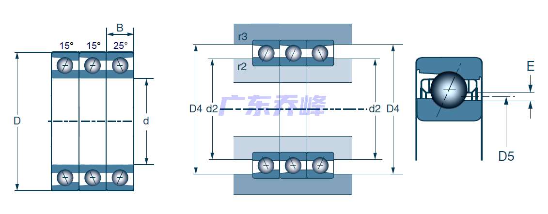 | 三列角接觸球軸承,機床用,Q56系列 - 尺寸 | |