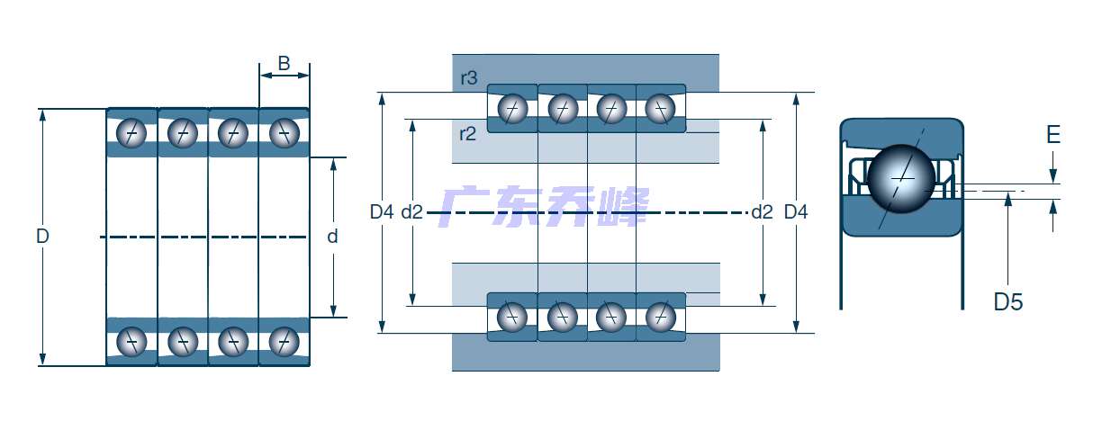 | 四列角接觸球軸承,機床用,Q18型 - 尺寸 | |