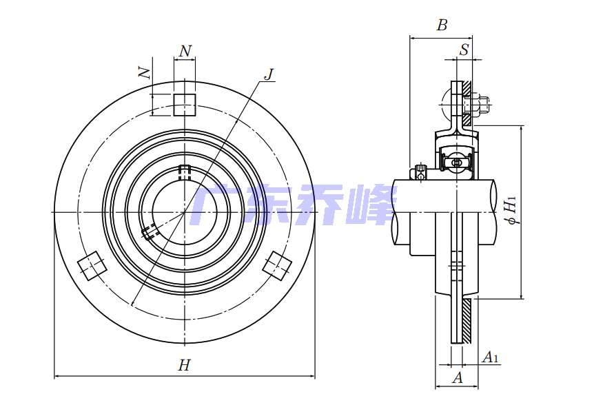 | 三螺栓圓形法蘭式軸承座單元帶橡膠圈,沖壓鋼外殼,帶緊定螺釘,ASRPF型 - 尺寸 | |
