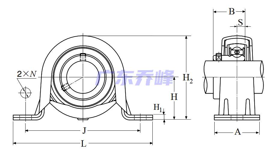 ASPL205D1 詳細尺寸,d:25.000mm,h:33.30000mm,b:38.000mm,j:105.000mm,2b:68.000mm,r:140.000mm