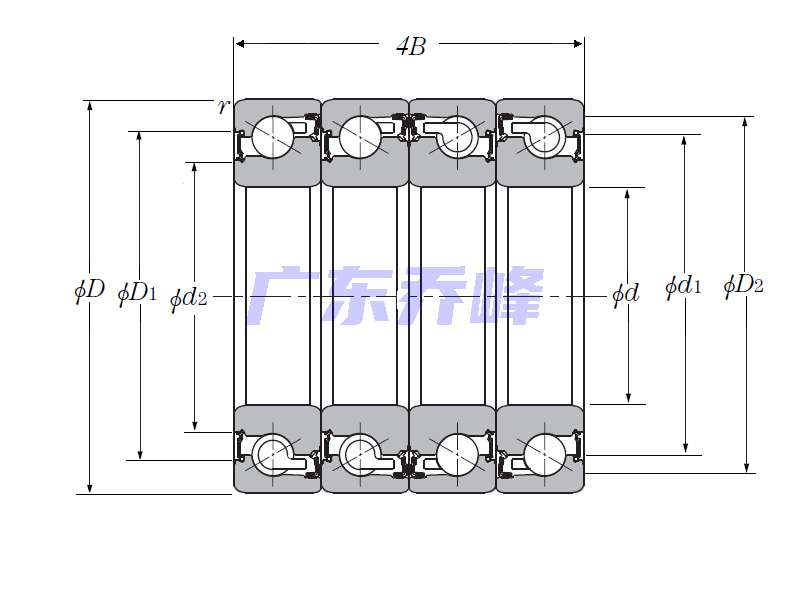 | 滾珠絲杠用四列角接觸推力球軸承 - 開式,兩排承受軸向載荷 - 尺寸 | |