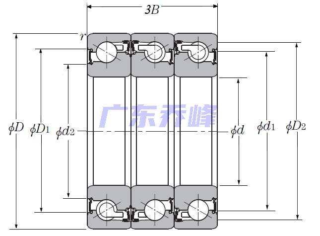 | 滾珠絲杠用三列推力角接觸球軸承 - DFT配對,雙面密封,兩排承受軸向載荷 - 尺寸 | |