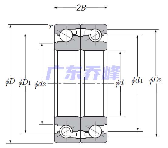 | 滾珠絲杠用雙角接觸推力球軸承 - 面對(duì)面配對(duì),開式,一排承受軸向載荷 - 尺寸 | |
