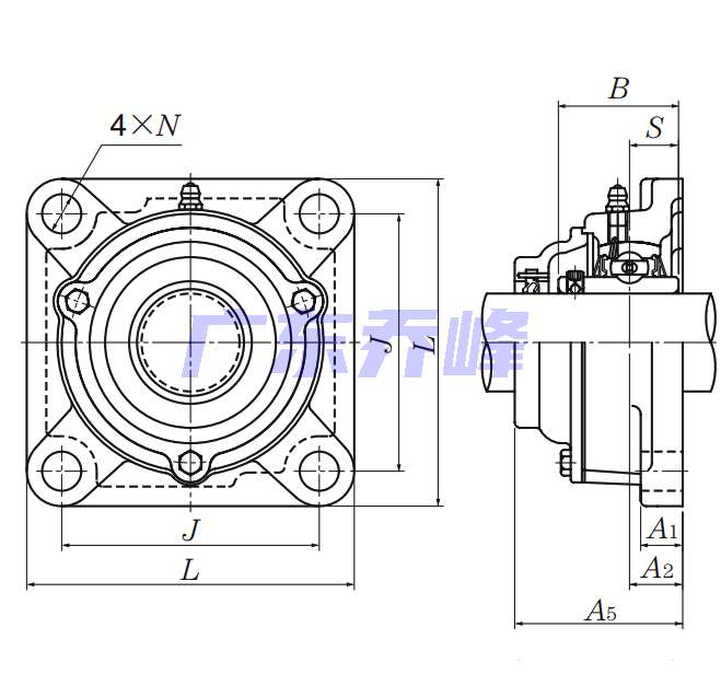 | 類型 | 四螺栓方形法蘭式軸承座 |