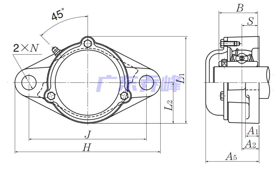 | 類型 | 雙螺栓菱形法蘭式軸承座單元 |