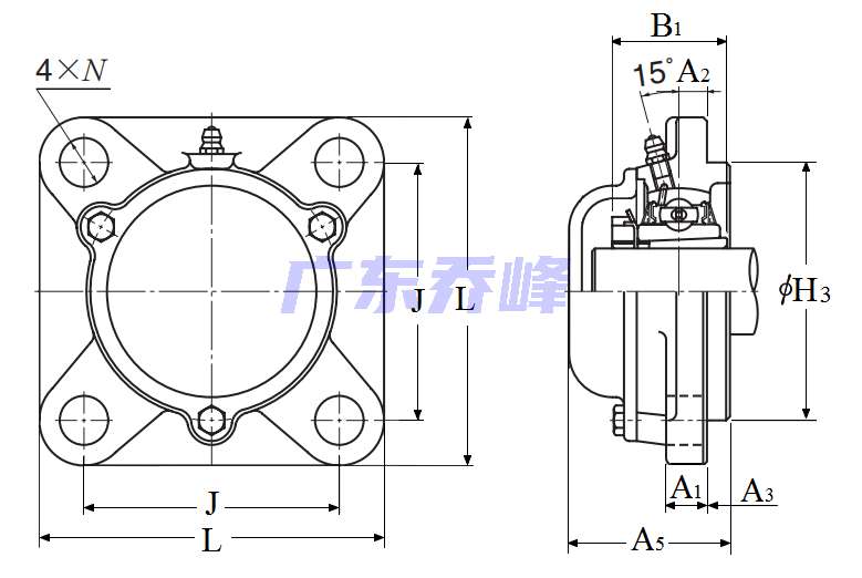 | 類型 | 四螺栓方形法蘭式軸承座 |
