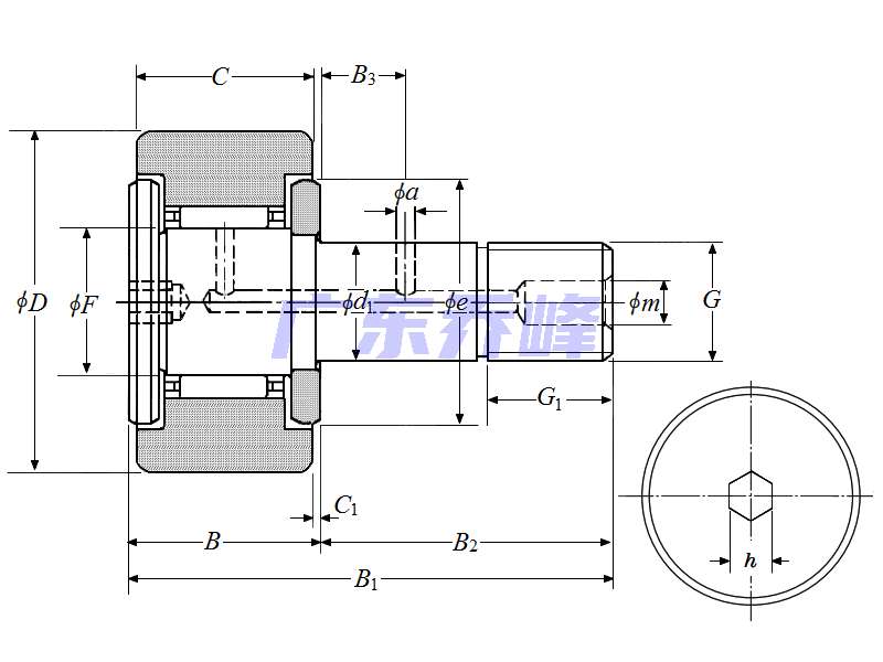 | 凸輪從動(dòng)螺柱式滾輪軸承 - 圓柱外徑,CR..H型 - 尺寸 | |