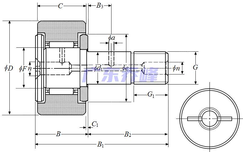 | 凸輪從動(dòng)螺柱式滾輪軸承 - 圓柱內(nèi)徑,CR型 - 尺寸 | |