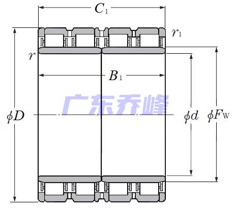 四列圓柱滾子軸承帶空心滾柱&銷式保持架 - 尺寸