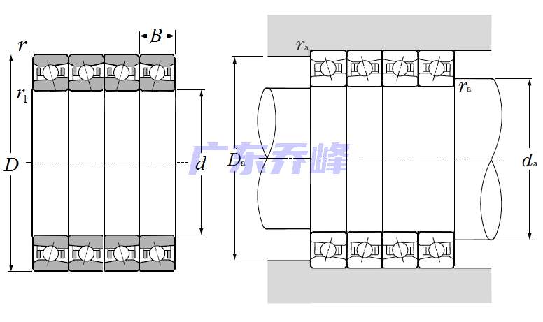 | 超高速多列角接觸球軸承,串聯(lián)配對 - 尺寸 | |