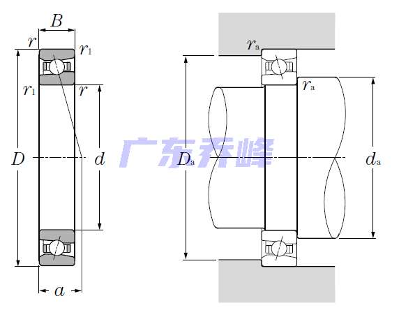 | 超高速單列角接觸球軸承 - 尺寸 | |