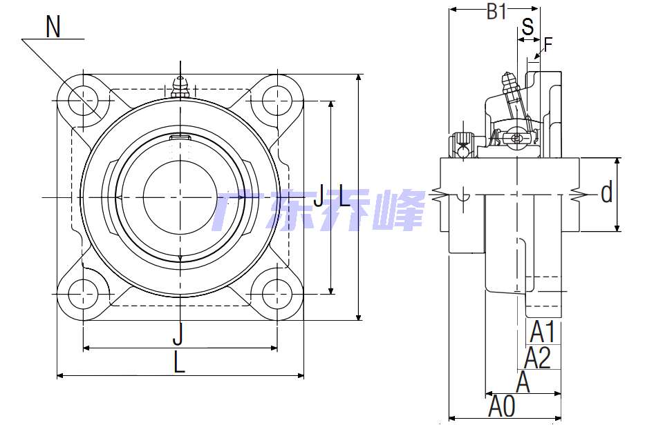 軸承型號:JELFU-2,超一流四螺栓法蘭式軸承座,偏心鎖緊,JELFU型