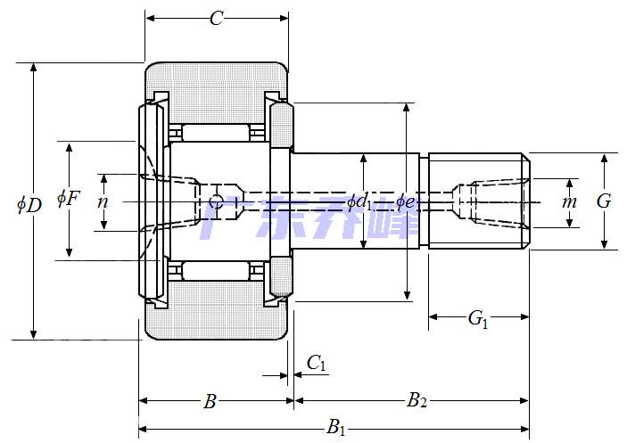 軸承型號:KRT16XLL,凸輪從動螺柱式滾輪軸承 - 圓柱內徑,KRT..LL型