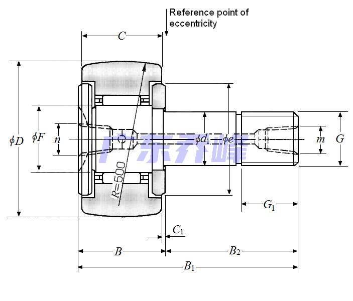 軸承型號:KRU80,凸輪從動螺柱式滾輪軸承 - 球面外圈,KRU型