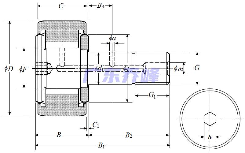 軸承型號:KRV22FXLLH,凸輪從動螺柱式滾輪軸承 - 圓柱內徑,KRV..LLH型