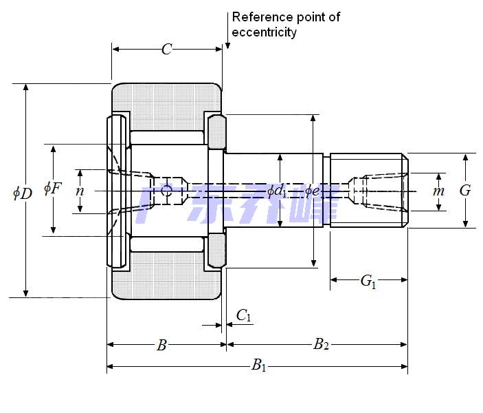 | 凸輪從動螺柱式滾輪軸承 - 圓柱內徑,KRVU型 - 尺寸 | |