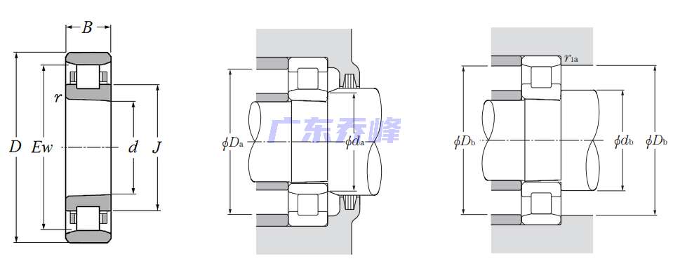 圓柱滾子軸承 - 圓錐孔 -內圈帶兩個加強筋,普通外圈 - 尺寸