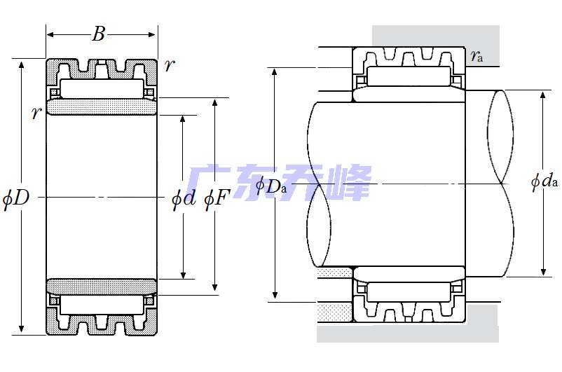 | 游隙可調滾針軸承帶內圈 - 尺寸 | |