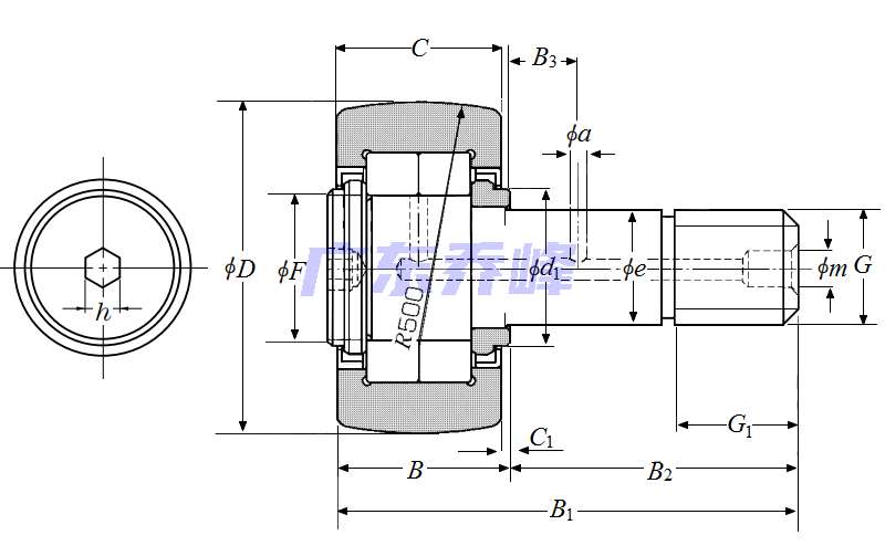 | 凸輪從動(dòng)螺柱式滾輪軸承 - 球面外圈,NUKR..H型 - 尺寸 | |