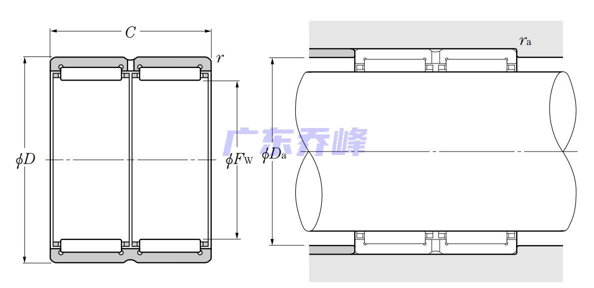 | 雙列機加工滾針軸承,不帶內圈 - RNA69.R系列 - 尺寸 | |