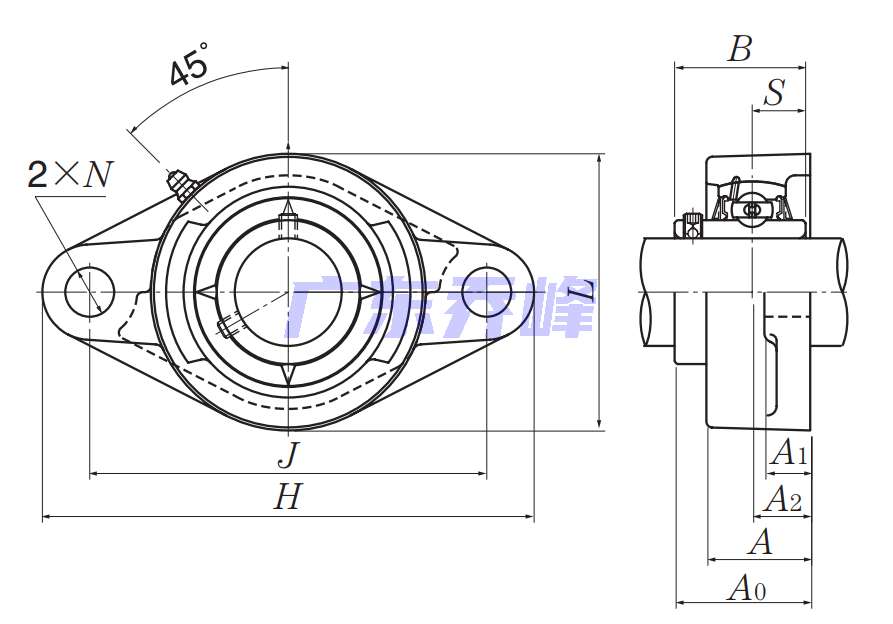| 類型 | 雙螺栓菱形法蘭式軸承座單元 |